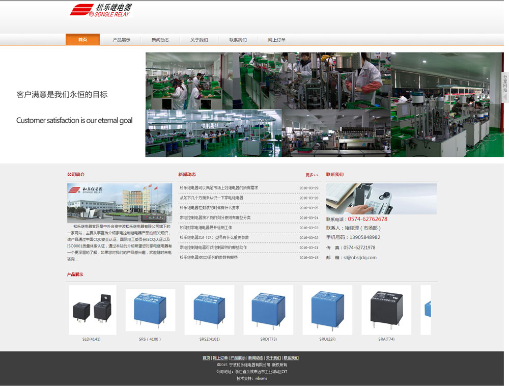 2016年三木森與寧波松樂繼電器分公司負(fù)責(zé)人褚經(jīng)理合作,為他們?cè)O(shè)計(jì)了全新的網(wǎng)站界面,具體包括網(wǎng)站策劃,網(wǎng)站優(yōu)化等一系列服務(wù)。