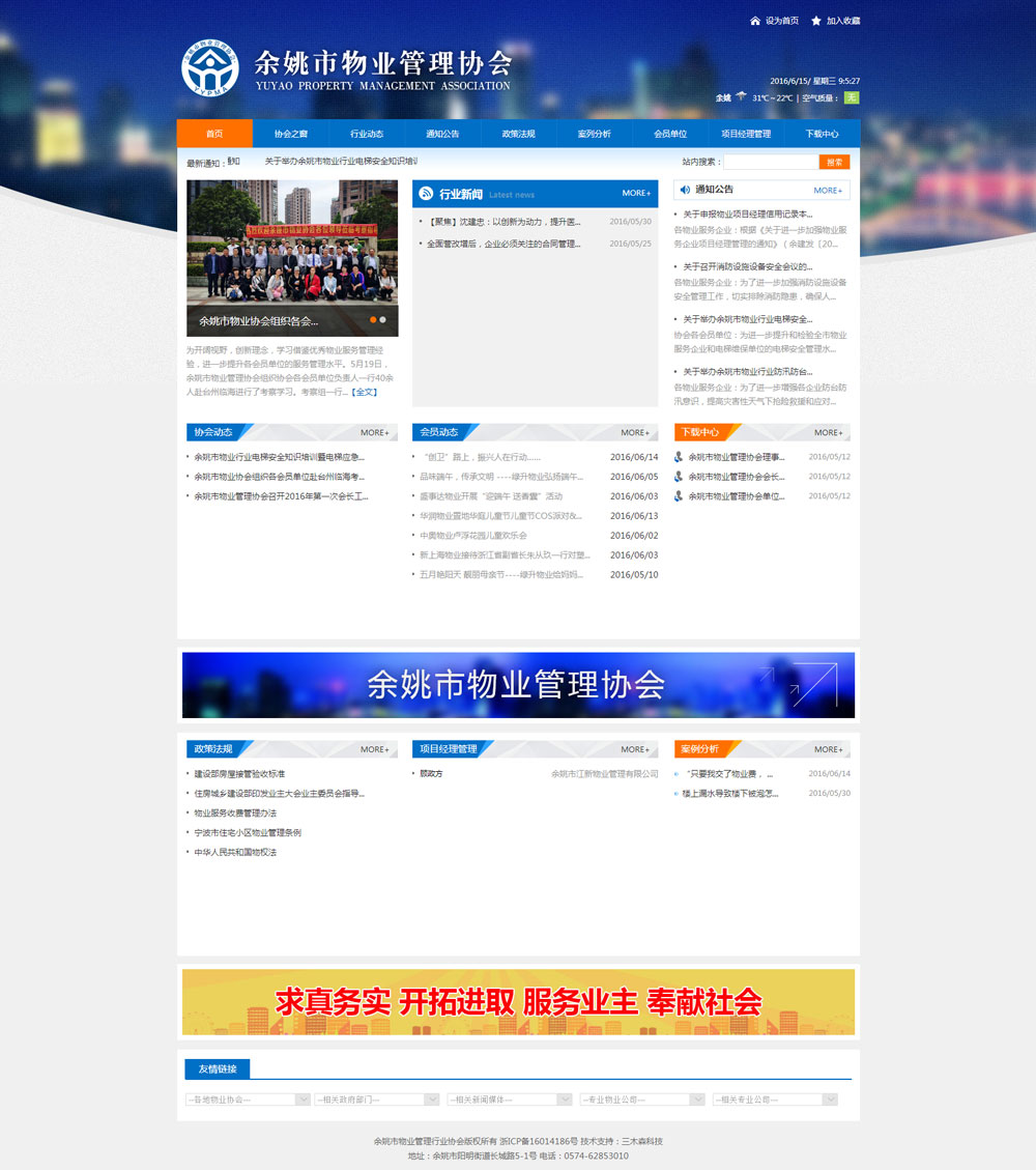 2016余姚三木森簽約余姚物業(yè)協(xié)會,為客戶提供PC端的整合營銷方案,為客戶提供高品質(zhì)高效率的咨詢顧問、項目策劃、頁面設(shè)計制作、項目平臺開發(fā)、運營推廣、項目維護等整站式、一條龍的服務(wù)!