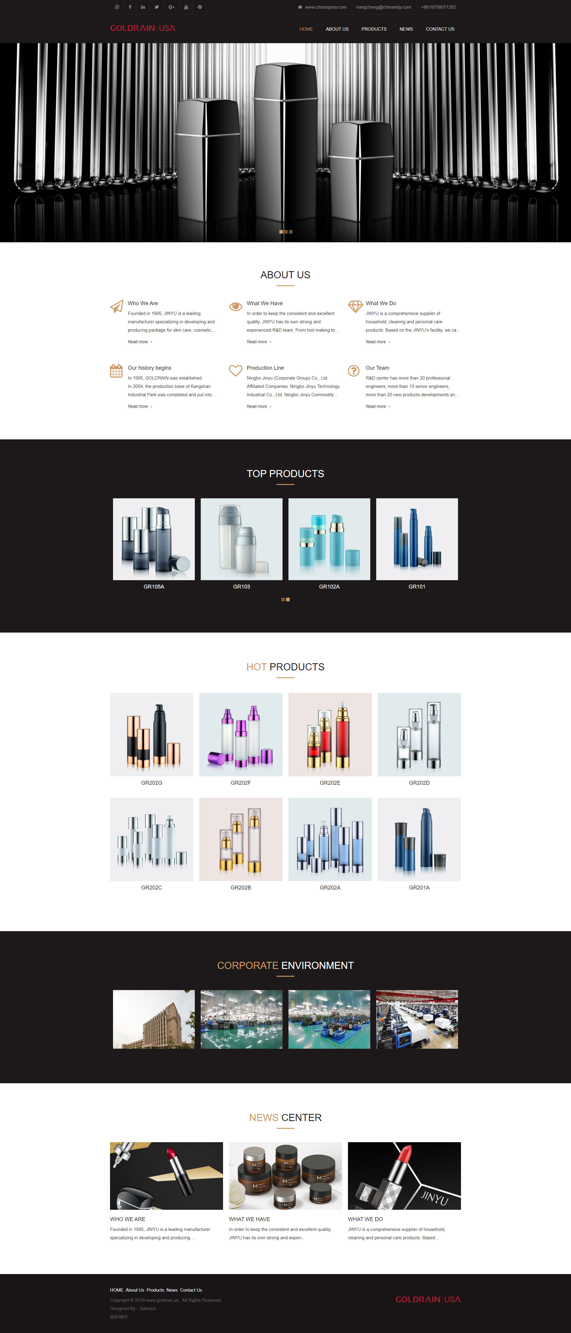 寧波金雨科技實(shí)業(yè)有限公司成立于1995年,是一家以生產(chǎn)手扣式噴霧器、乳液泵、香水噴頭、真空瓶等化妝品包材為主的外貿(mào)型企業(yè)?,F(xiàn)有員工1000多人,年銷售額5000多萬(wàn)美金,產(chǎn)品遠(yuǎn)銷世界各地。公司擁有現(xiàn)代化的廠房設(shè)備,自有研發(fā)制造一體的模具加工中心、氧化鋁配件工廠、二次加工設(shè)備。