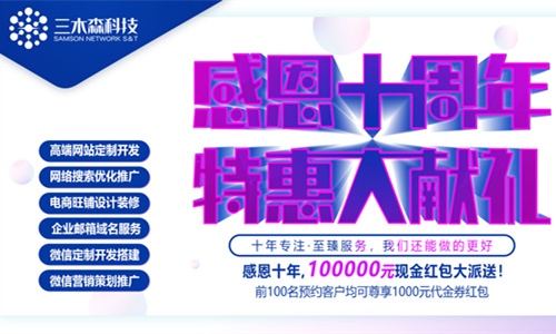 感恩十周年·特惠大獻禮四重驚喜禮包,只為回饋最好的你! 驚喜福利①:十萬現金紅包,感恩大派送所有新老客戶,前100名預約任意一項網絡服務,均可尊享1000元現金...